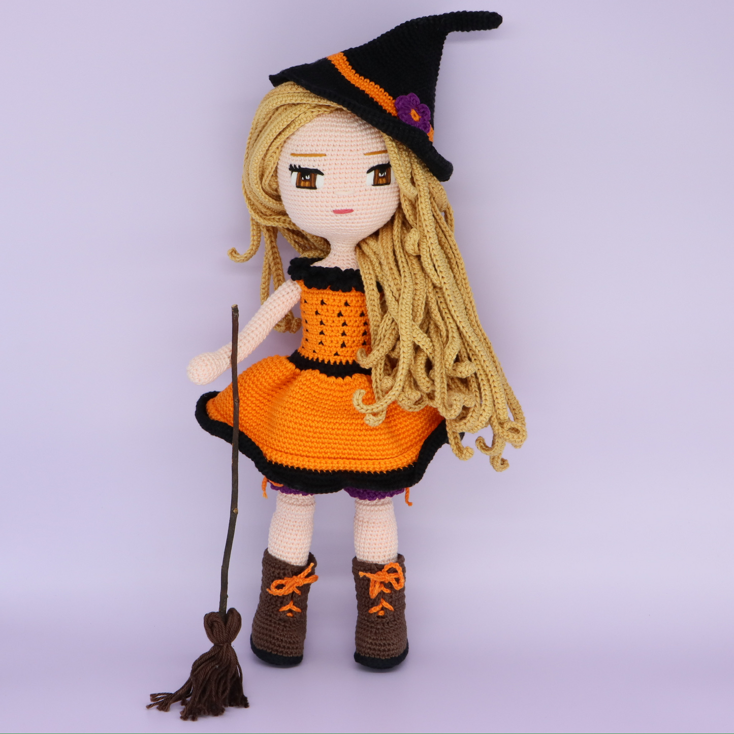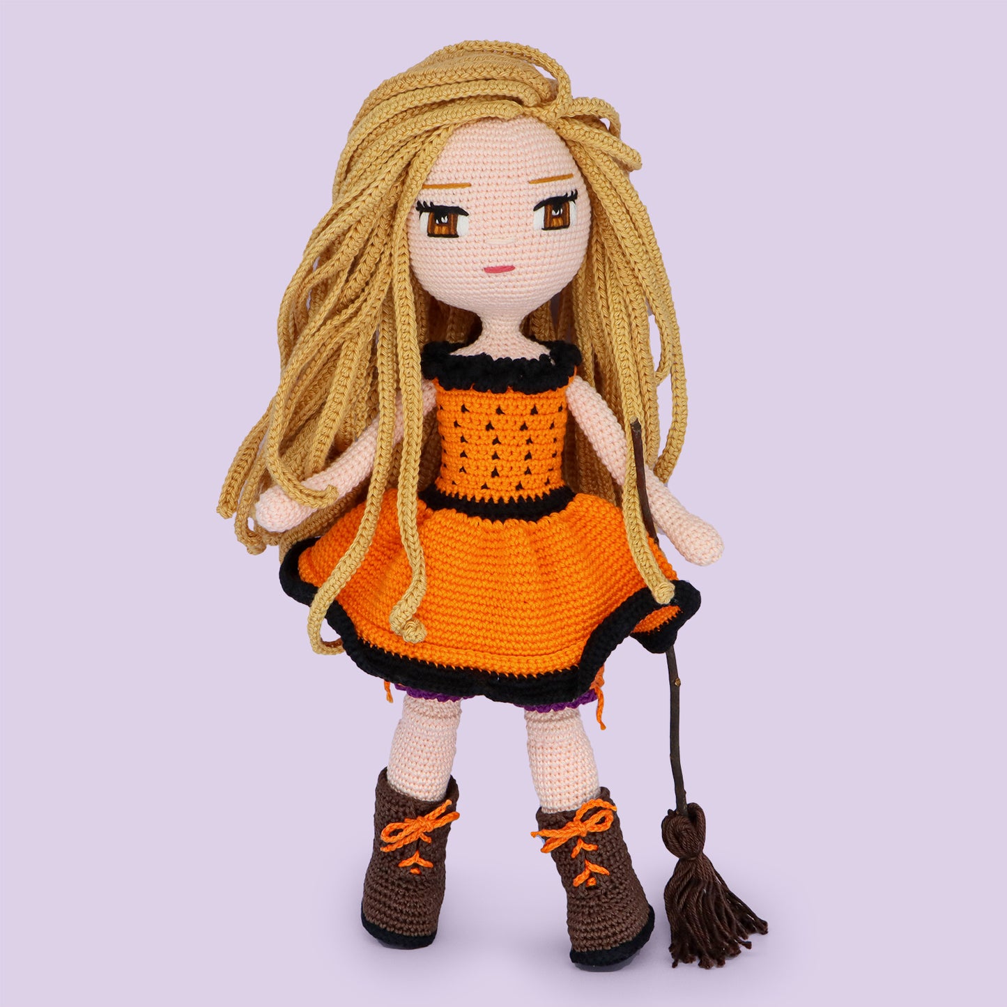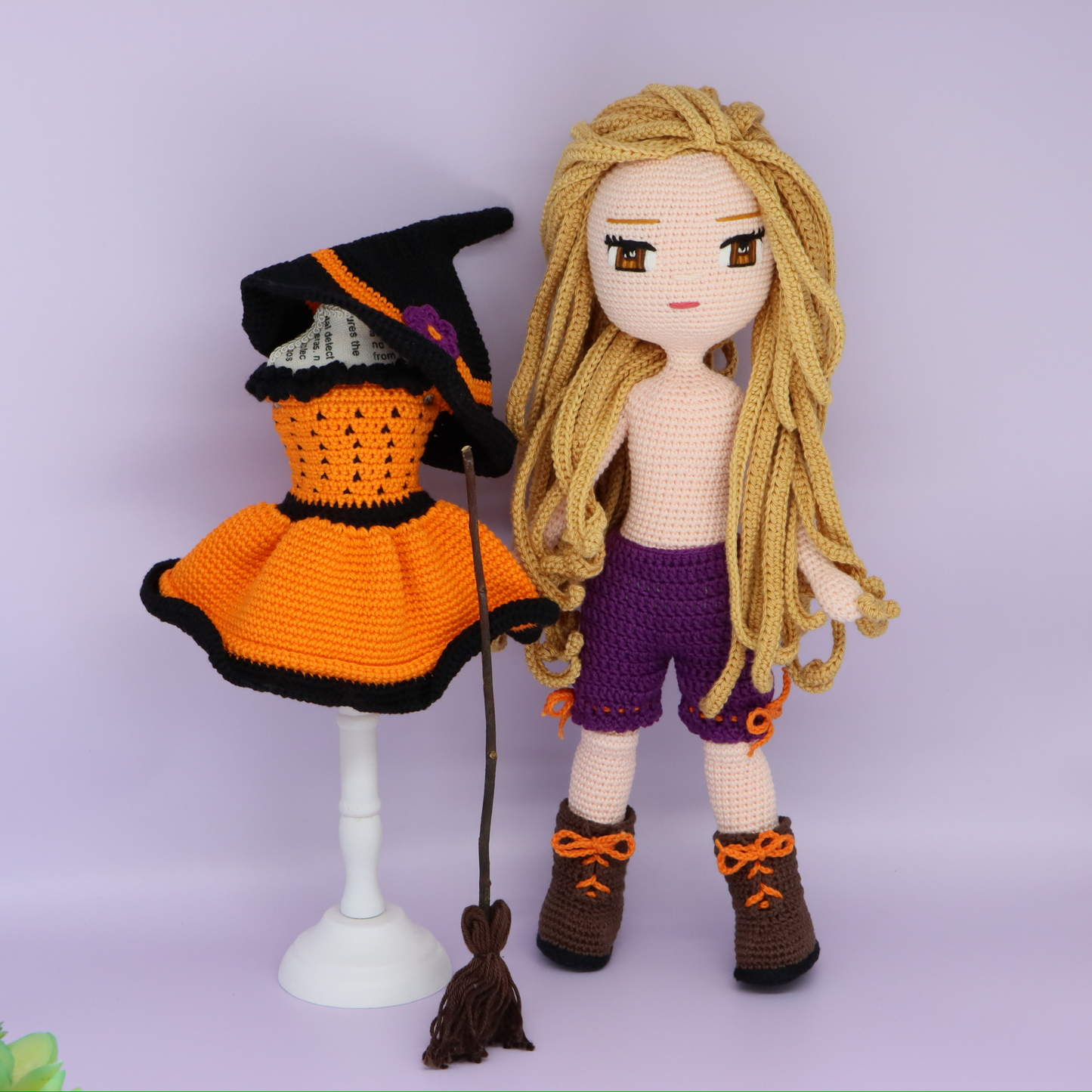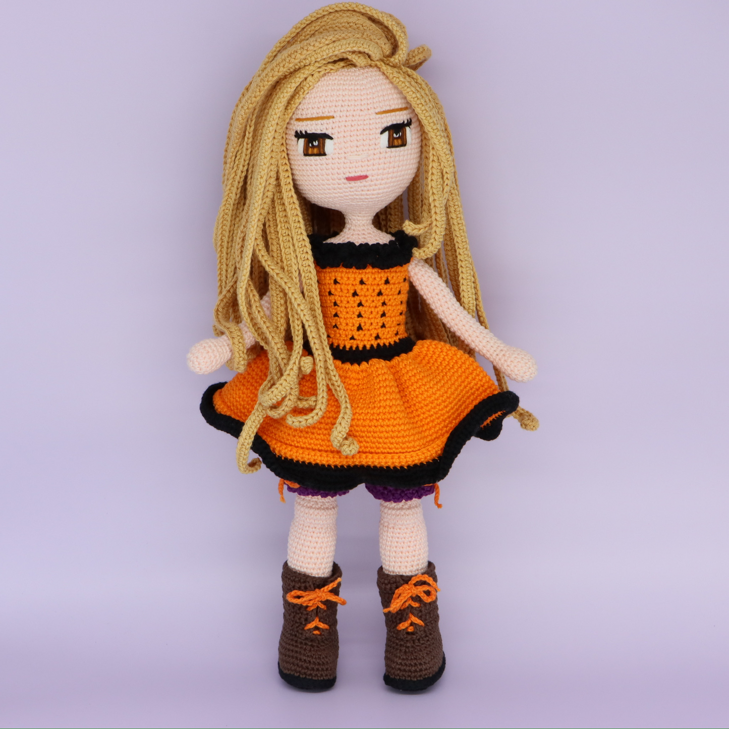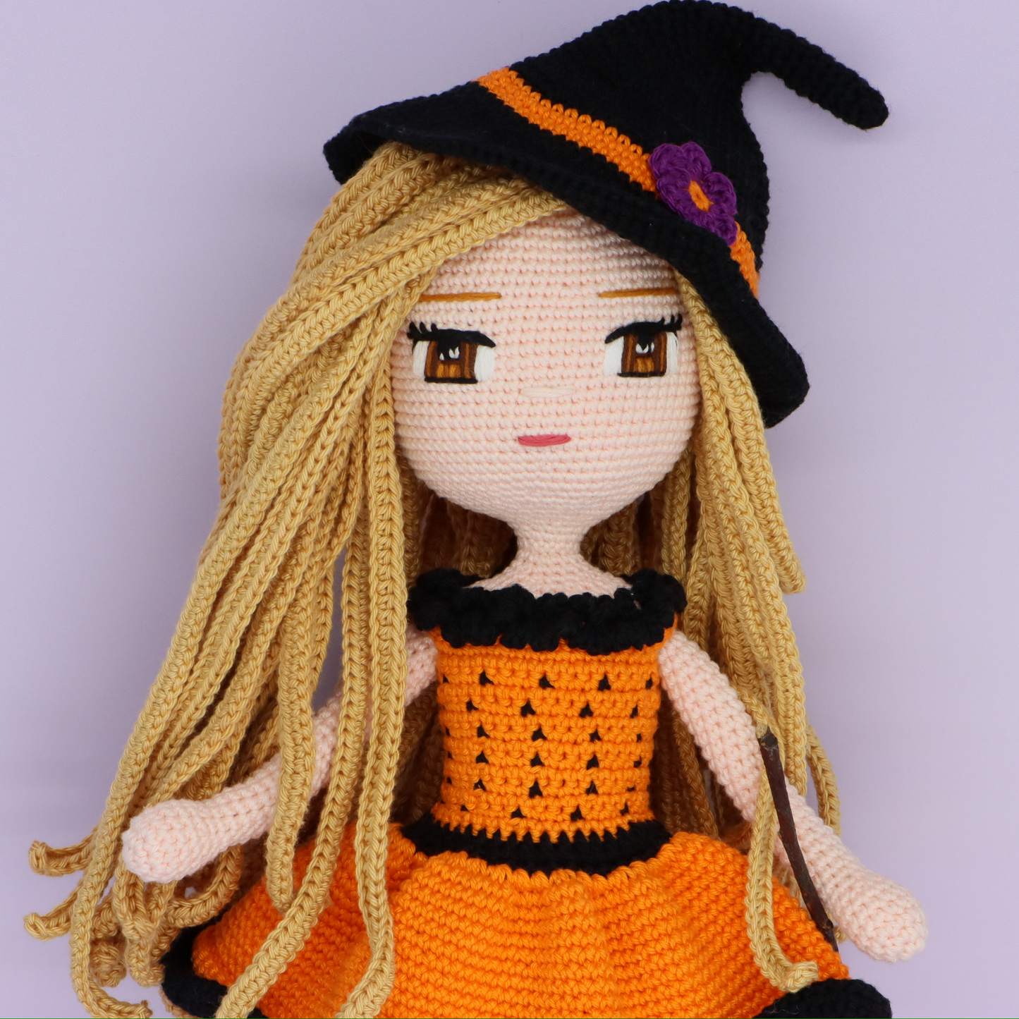 Step-by-step CROCHET DOLL PATTERN (in English) with full instructions for easily crocheting our Louise doll and her Halloween outfit. Includes the facial features embroidery pattern.