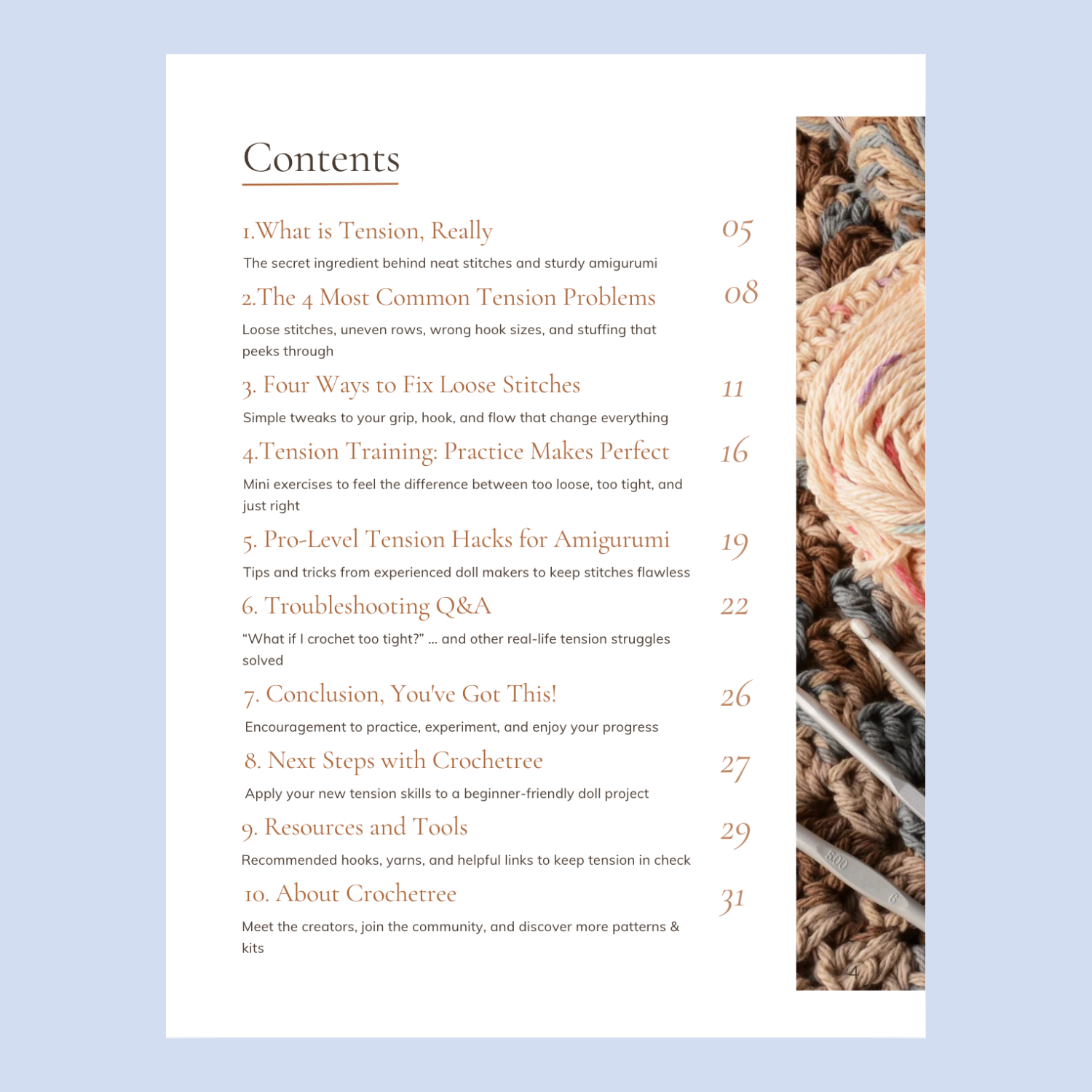 - Written in Crochetree's warm, supportive voice, like a crochet friend guiding you.