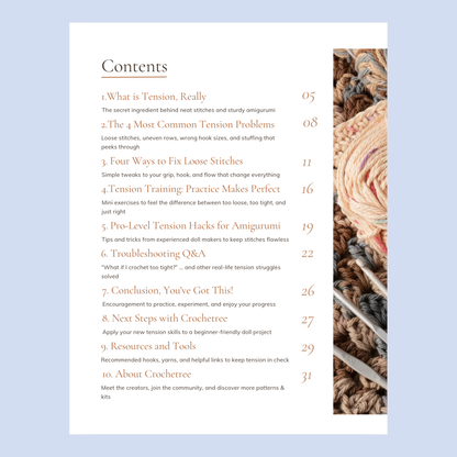 This beautifully illustrated eBook will guide you through one of the most important skills in crochet: controlling your tension so your stitches are neat, firm, and consistent. Perfect for beginners and experienced crocheters alike, it's the missing piece to creating dolls that look polished and professional.